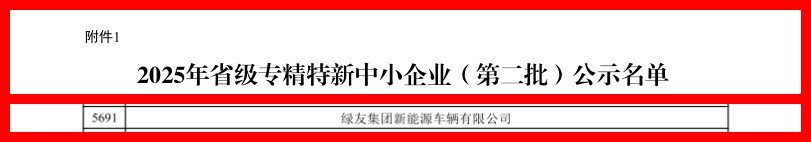 江蘇省工業(yè)和信息化廳于今日公示專精特新中小企業(yè)名單,綠友集團(tuán)新能源車輛有限公司榮獲2025年江蘇省“專精特新”中小企業(yè)認(rèn)定。綠友擁有高素質(zhì)的研發(fā)團(tuán)隊(duì)、核心的產(chǎn)品優(yōu)勢(shì)、扎實(shí)的生產(chǎn)經(jīng)驗(yàn)積累和優(yōu)質(zhì)的銷售服務(wù)團(tuán)隊(duì)。這不僅是對(duì)過(guò)去成績(jī)的肯定,更是未來(lái)邁向更專業(yè)化、更高水平發(fā)展的新起點(diǎn)。